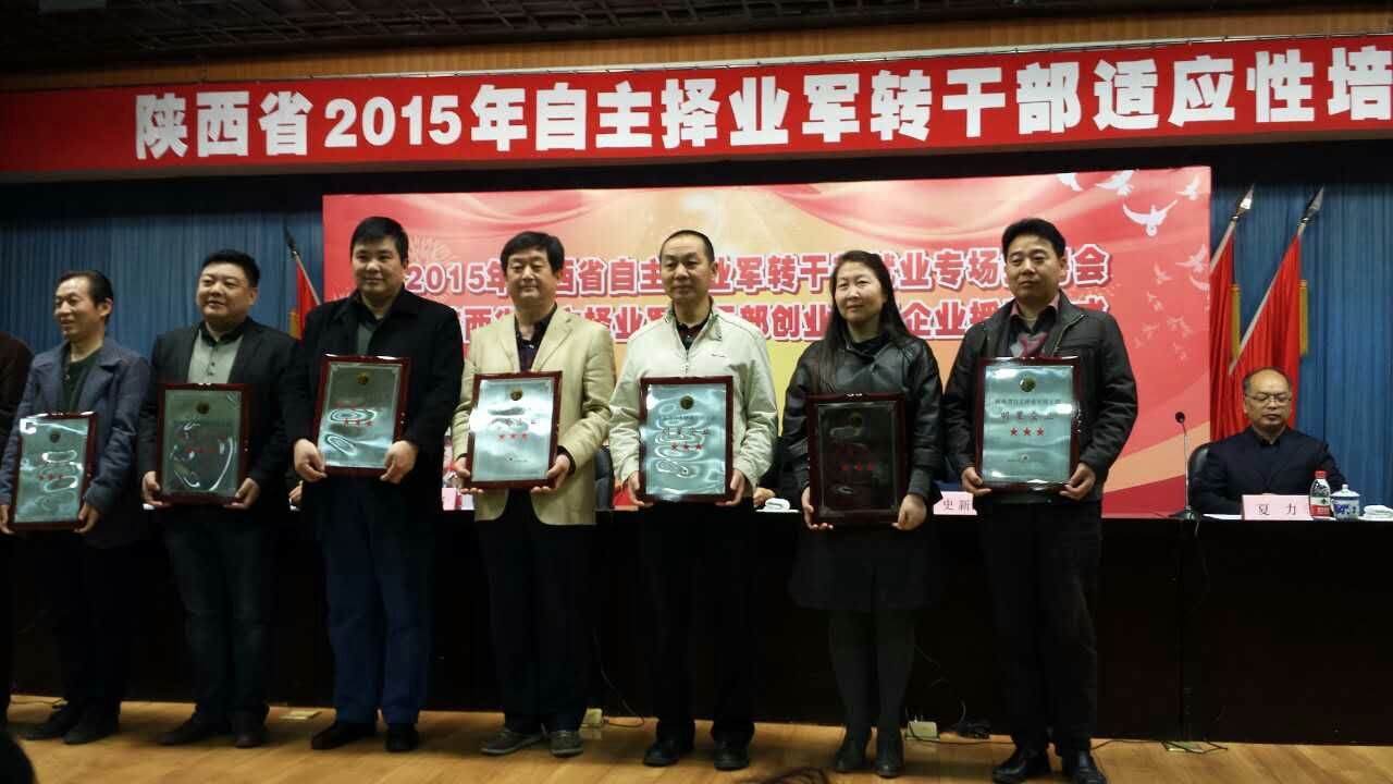 2015年陜西省自主擇業(yè)軍轉(zhuǎn)干部就業(yè)專場招聘會暨陜西省自主擇業(yè)軍轉(zhuǎn)干部明星企業(yè)授牌儀式于2015年10月30日在省軍區(qū)招待所召開,我公司榮獲“陜西省自主擇業(yè)軍轉(zhuǎn)干部明星企業(yè)”稱號。