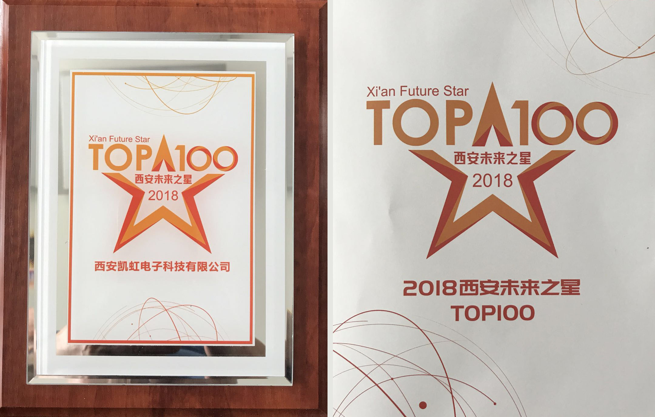 2018年9月5日-6日,“2018西安未來之星Top100”榜單在“2018全球創(chuàng)投峰會”上盛大發(fā)布。西安凱虹電子科技有限公司憑借其技術(shù)的先進性和創(chuàng)新性在參賽的一千多家企業(yè)中脫穎而出,入圍TOP100。